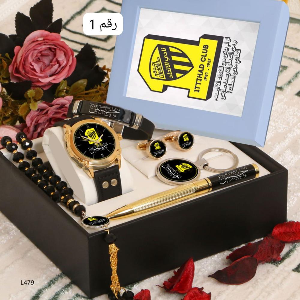 طقم ساعه رجالي نادي الاتحاد بالاسم حسب الطلب