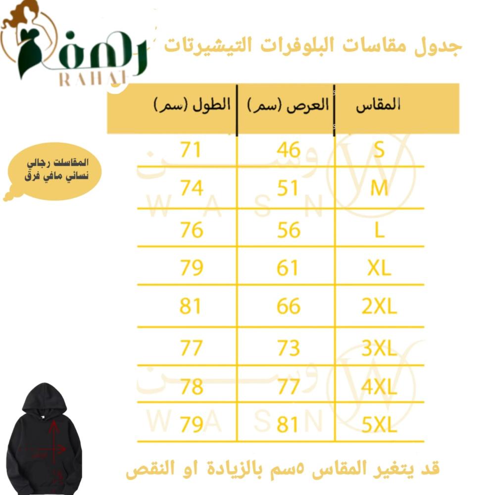 ملاحظة: يشمل المنتج قطعة هودي واحدة فقط. لطلب قطعتين بمقاسات أو تفاصيل مختلفة، يُرجى إضافة المنتج إلى السلة مرتين وتحديد التفاصيل لكل قطعة من السلة.