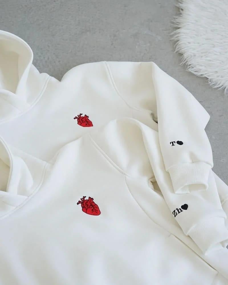 ارتقِ بأناقتك الشتوية مع هودي القلب – مصمم خصيصاً ليجمع بين الدفء والتفرد. بتطريز قلب أنيق وخيار تخصيص الأحرف على الأكمام، هذا الهودي يجمع بين الراحة والفخامة ليكون خيارك المثالي لأيام الشتاء الباردة ليكون هدية مثالية تعبّر عن اهتمامك.