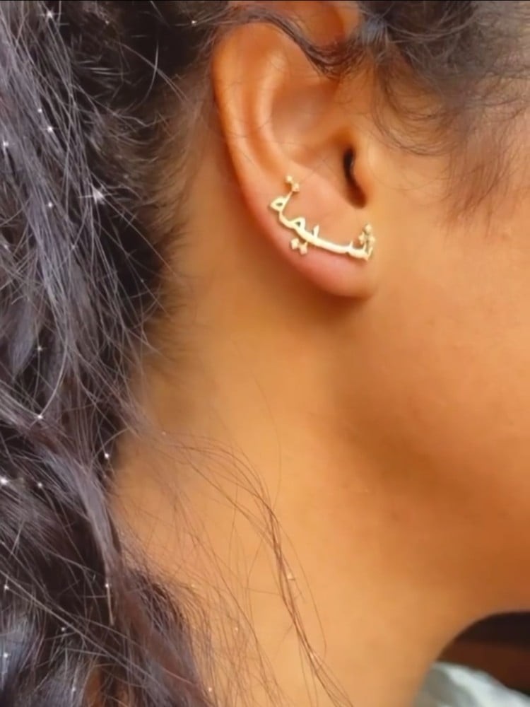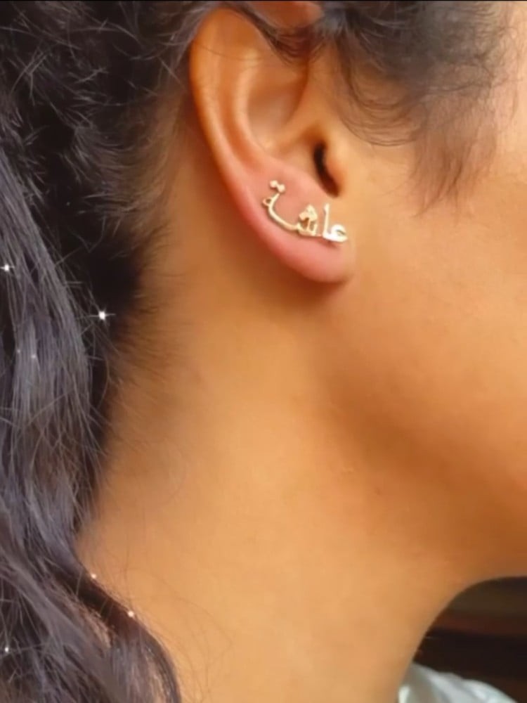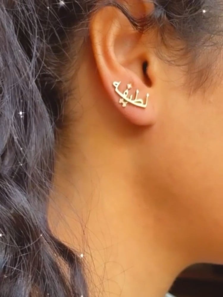 أناقة لك ولمن تحبون بالاسم 😍تفاصيل المنتج:عدد القطع 2حلق للاذنين.متوفر باللونين ذهبي او فضي.طلاء ذهب عيار 21.مضمون مايتغير لونه.تاتيكم بتغليف شيك وجميل.