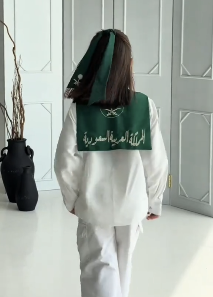 وشاح اليوم الوطني للأطفال مع ربطة الراس