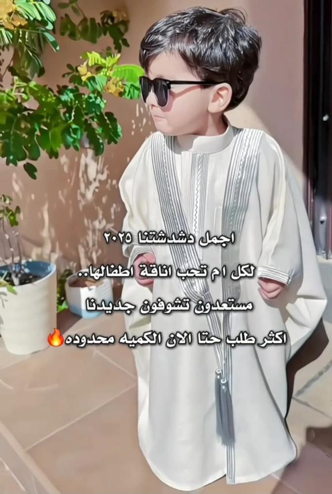 استقبل عيد الفطر بتفرد مع ثوب وبشت حصري يجمع بين الأصالة والتصميم العصري، ليمنح طفلك ثوب وبشت حصري يجمع بين التراث الأصيل والتصميم العصري، يتميز بتفاصيله الدقيقة مثل التطريز الفضى وعلامة البشت مواصفات المنتج: القطع ثوب + بشت خليجي حصري التصميم علامة بشت تراثي بلون ياقة الثوب وتطريز فضي على البشت، مع إمكانية تطريز الاسم في الخلف القماش لينن درجة أولى قماش لينن) المقاسات من شهر إلى 12 سنة اللون بيج المناسبات مثالي لعيد الفطر ليظهر الطفل بشكل فريد وهدية رائعة لرمضان تعبر عن الفخر للأمهات