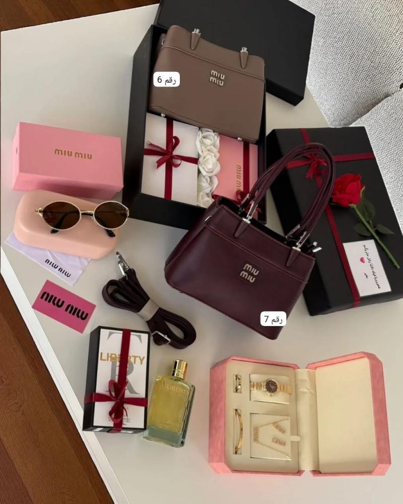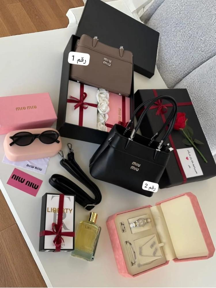 عرض خاص بيوم الوطني🔴شنطه مياو مياو درجه اولى 🔴🔴نضاره مياو مياو مع الملحقات🔴🔴سلسال حلق مياو مياو 🔴🔴ساعه مع سواره وخاتم🔴🔴عطر ١٠٠مل 🔴الشنطة 1 فقط يمكن اختيار لون الشنطة حس الرقم الموضح